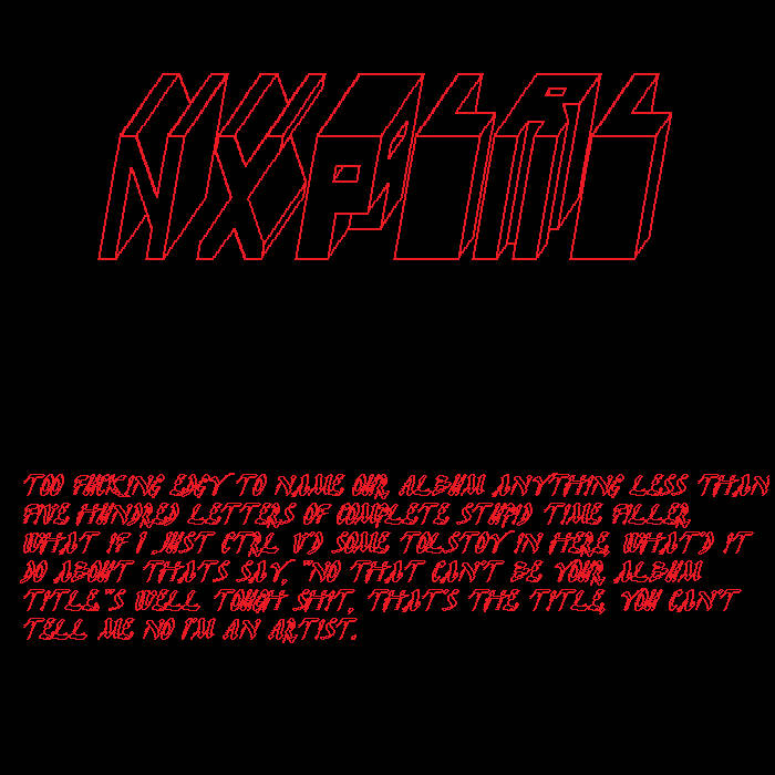 NXPLRL is the result of plural Nix, which is similar to "Two Johns", except neither of them endorse coffee and only half of them would. Also, being far too edgy to appear in person let alone a recording studio, all vocal communication is limited to telephonic messages sent via archaic equipment. ... more